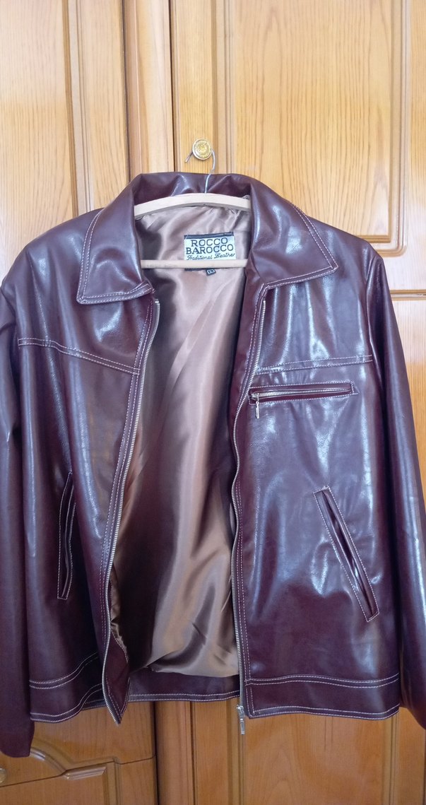 Kahverengi parlak deri biker ceket, kesik yakalı, fermuarlı cepli ve uzun kolludur. Midi boy ve desensiz tasarımıyla günlük kullanıma uygundur. Sorunu yok. Vintage#vintage