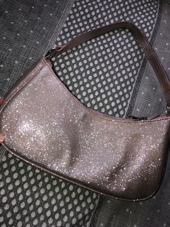 Kahverengi deri kadın çanta, parlak simli ve yılan desenli, trend sokak modası için uygundur.