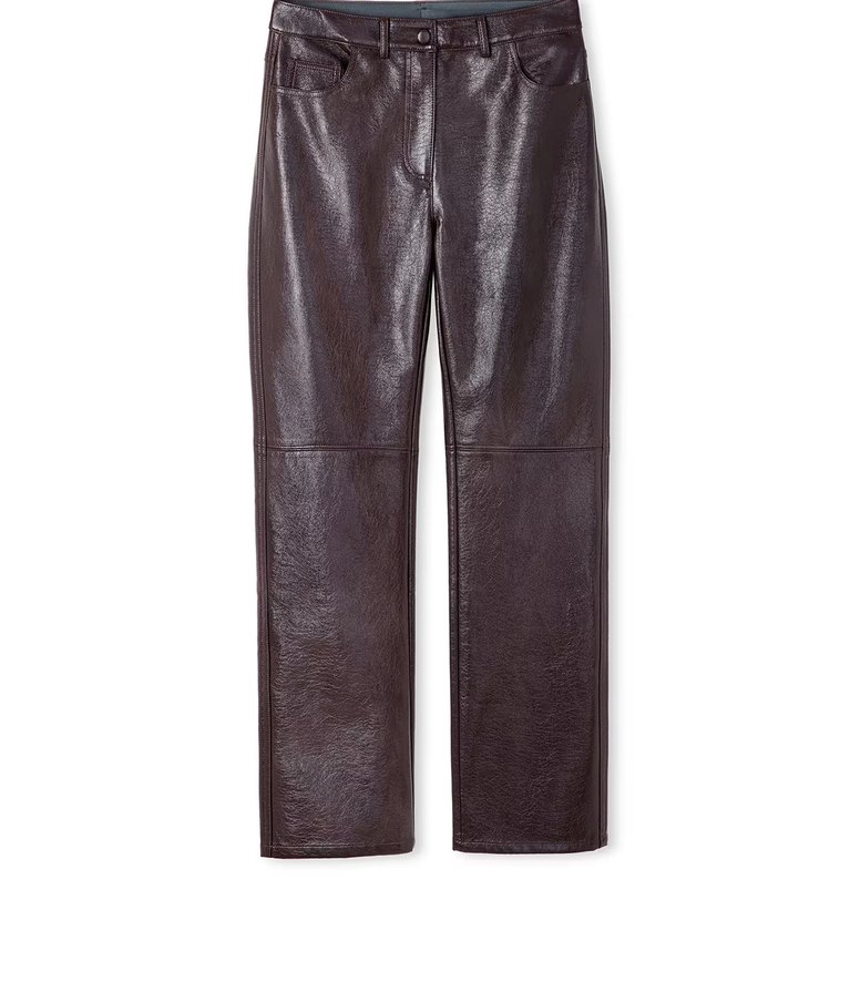 Mürdüm Parlak Deri Kadın Pantolon