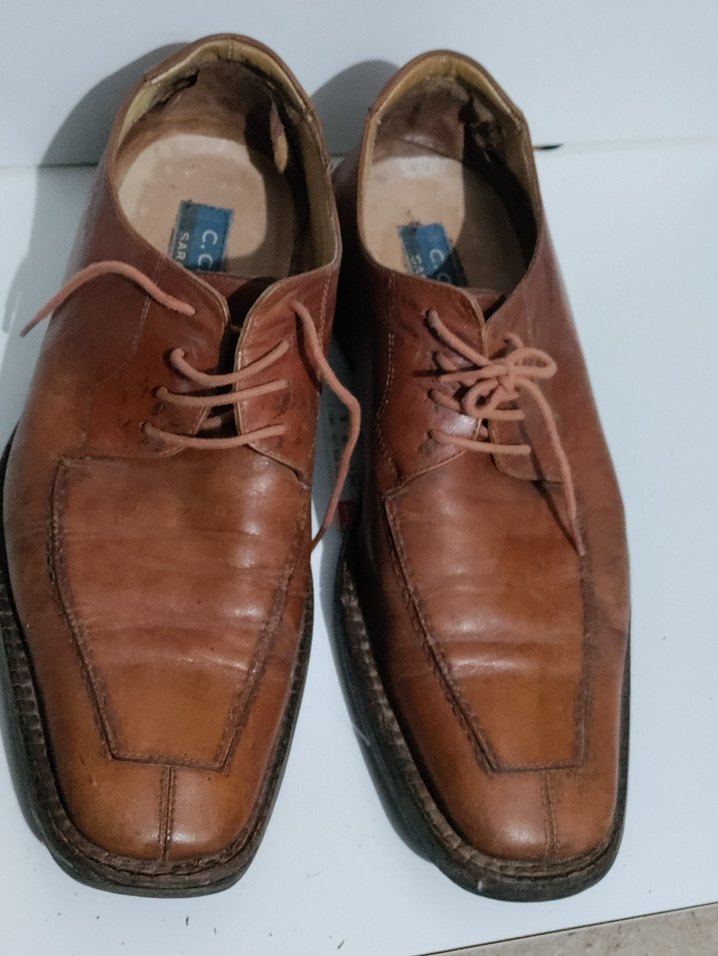 Kahverengi parlak deri klasik erkek ayakkabısı, sarar marka olup herhangi bir deformesi veya yırtığı yoktur. Desensiz ve geleneksel stil.