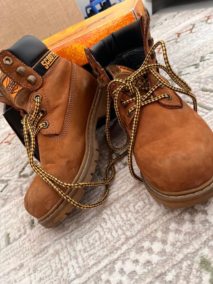 Kahverengi parlak deri, tokalı ve bağcıklı botlar. SCOOTeR markası dil ve bilek kısmında yer alır. Trendy casual tarzda. Ön kısmlarda fotoğraftaki gibi kusurlar vardır