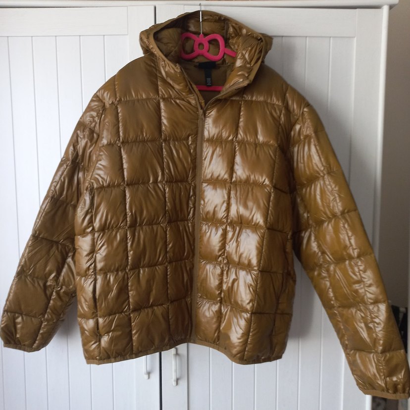 Parlak kahverengi, fermuarlı kapüşonlu erkek mont. Günlük sokak stili için uygundur.