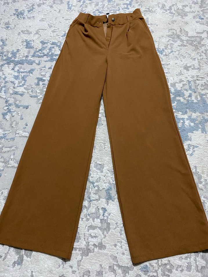 Kahverengi, parlak kumaştan yapılmış midi uzunlukta kadın pantolonu. Rahat kesimiyle günlük şıklık ve rahatlık sunar.