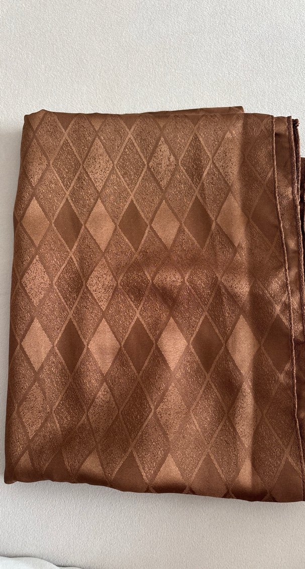 Kadınlar için kahverengi parlak, ipeksi kumaştan, drapeli bir şal. Bohem Paris tarzını yansıtıyor. ✨