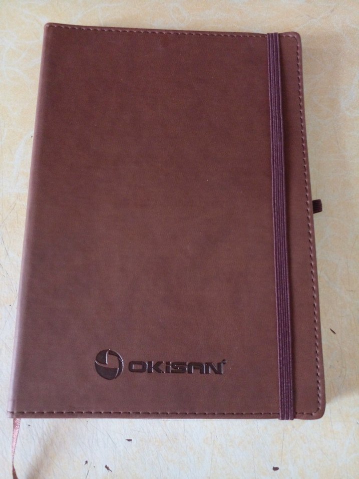 Kahverengi parlak kapaklı, elastik bantlı ve önünde OKISAN yazısı bulunan planlayıcı. tarihsizdir çizgilidir #ajanda #defter #okulmalzemeleri #ofismalzemeleri #kırtasiyemalzemeleri