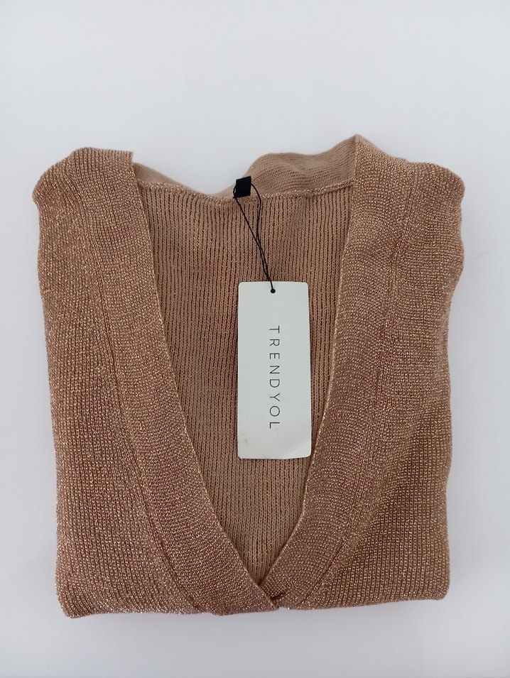 Parlak kahverengi, V yakalı, uzun kollu, kısa ve dar kesim kadın hırka, şık ve rahat bir görünüm sunar. ✨ ilk görsel ve son görsel gün ışığında çekildi rengi öyle.