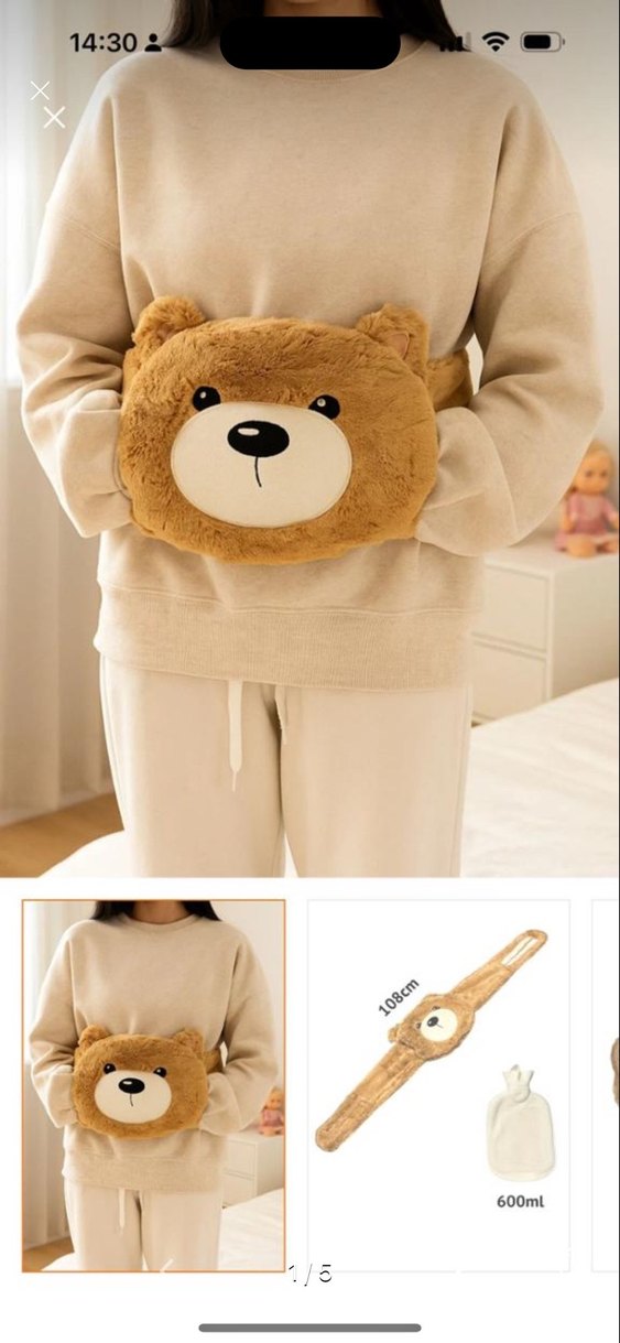 Yumuşak ve pastel kahverengi peluş ayı şeklinde oyuncak, sarılmak ve rahatlamak için uygundur. Sevimli ayı yüzü nakış detaylıdır. Sıcak su torbası