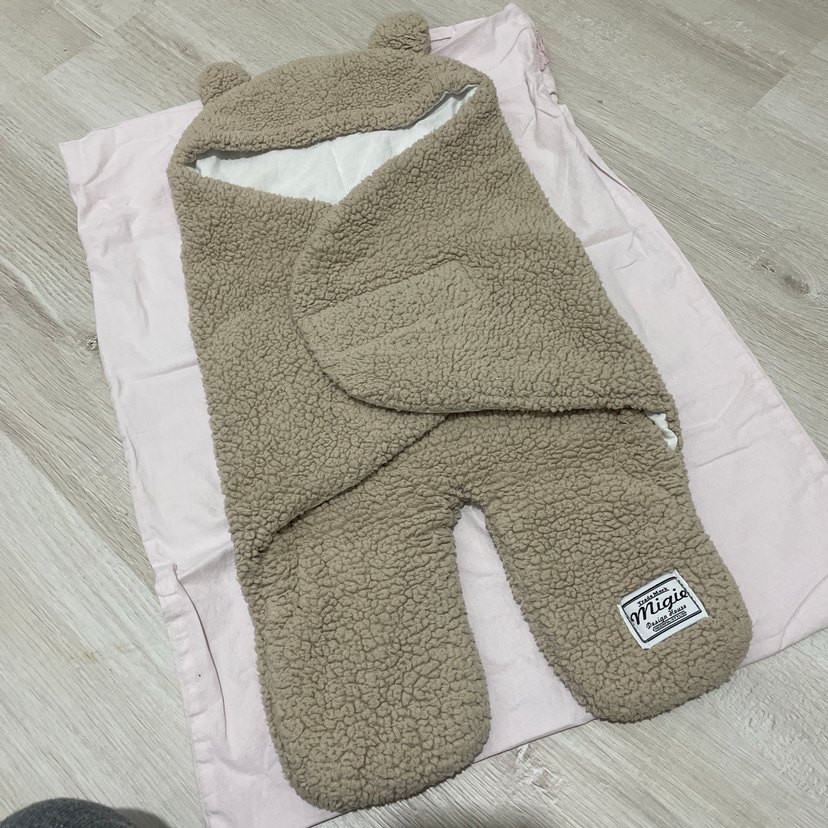 1-2 kez kullanıldı. Yumuşak ve sıcak kahverengi peluş bebek battaniyesi, kulaklı kapüşonlu. Desensiz ve bebekler için konforlu.