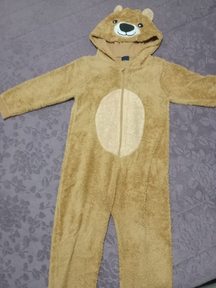 Yumuşak ve sıcak kumaştan kahverengi bebek tulumu, kapüşonunda sevimli ayı yüzü ve kürk detaylarıyla sokak tarzı için uygundur. #tulum #uykutulumu