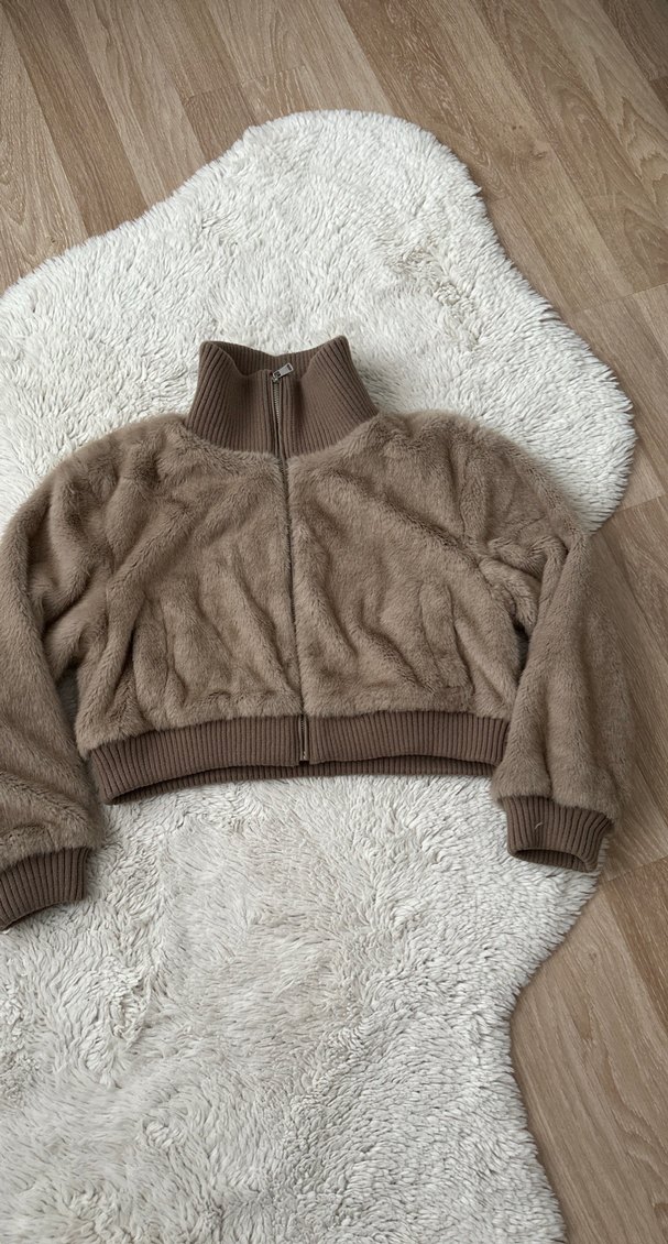 Yüksek yakalı, uzun kollu, bol kesim kadın ceket. Yumuşak peluş ve kürk detaylı, kahverengi tonlarında rahat ve gündelik tarzda bir parça. Normal boyda, fermuarlı ve günlük kullanıma uygun. Bir kere giydim rengi çok güzel alana hayırlı olsun
