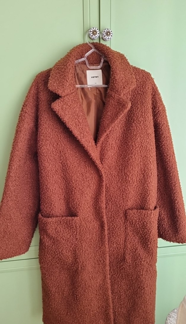 Yumuşak dokulu kahverengi peluş kaban, yaka ve ön ceplerle rahatlık ve şıklık sunar. Koton marka , S beden ama M L uyumlu, son fotografta uzunlugunu görebilirsiniz, boyum 169, sıcak tutar hicbir kusuru yoktur, ihtiyac fazlası oldugu icin satıyorum
