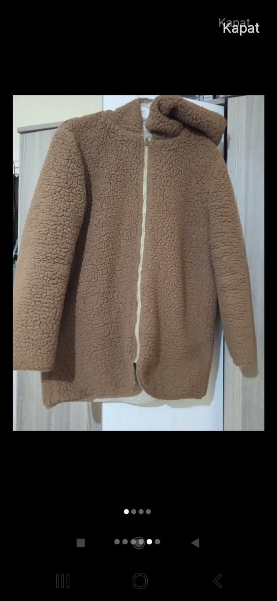 Kahverengi peluş detaylı, uzun kollu, notched lapel yaka ve midi boyda kadın ceket. Rahat ve bol kesimdir, gündelik kullanıma uygundur.
