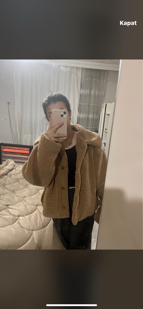 Kahverengi, peluş kumaştan uzun kollu, bol kesim ve kesik yakalı midi uzunlukta kadın ceket. Rahat ve sıcak tutar, günlük kullanıma uygundur. çok az kullanıldı❤️ teklif gönderebilirsiniz