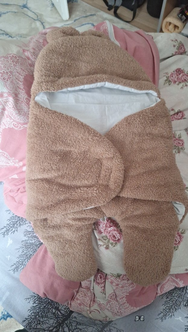 Yumuşak kahverengi peluş kundak sıcak tutar. Pastel tonlarda sade desensiz tasarım içerir. 3 6 ay için