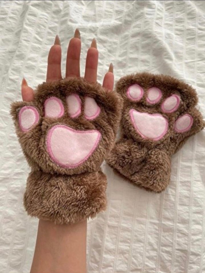 Kahverengi peluş, kürk detaylı ve patili tasarıma sahip kadın eldivenleri. Bohem ve rock punk stilini birleştiren rahat bir model.
