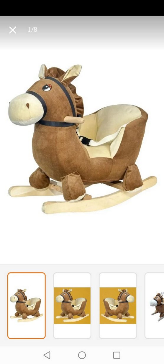 Kahverengi peluş sallanan at oyuncak, yumuşak oturma alanı ve güvenlik kemeri ile çocuklar için rahat bir sallanma deneyimi sunar.