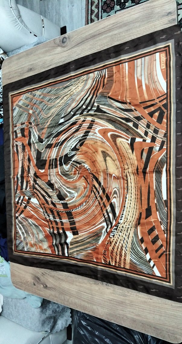 Kahverengi pilili bohem desenli kadın eşarp yumuşak sentetik kumaştan üretilmiştir.