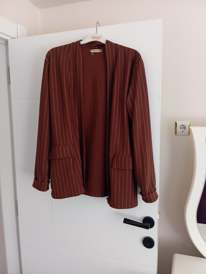 Kahverengi Pilili Kadın Blazer Ceket