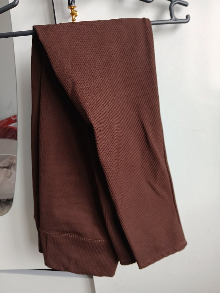 Yumuşak sentetik kumaştan yapılmış, pilili ve midi boy kahverengi tayt. Rahat ve sokak stiline uygun, günlük kullanım için idealdir.