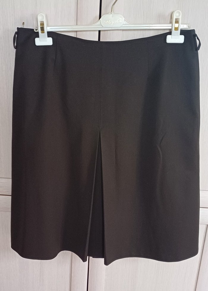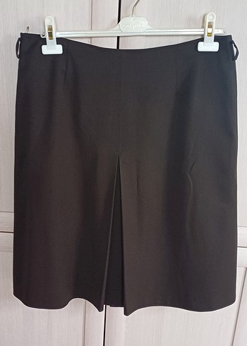 Kahverengi, pilili, midi boy etek. Ofis ve iş ortamına uygun goth tarzında.