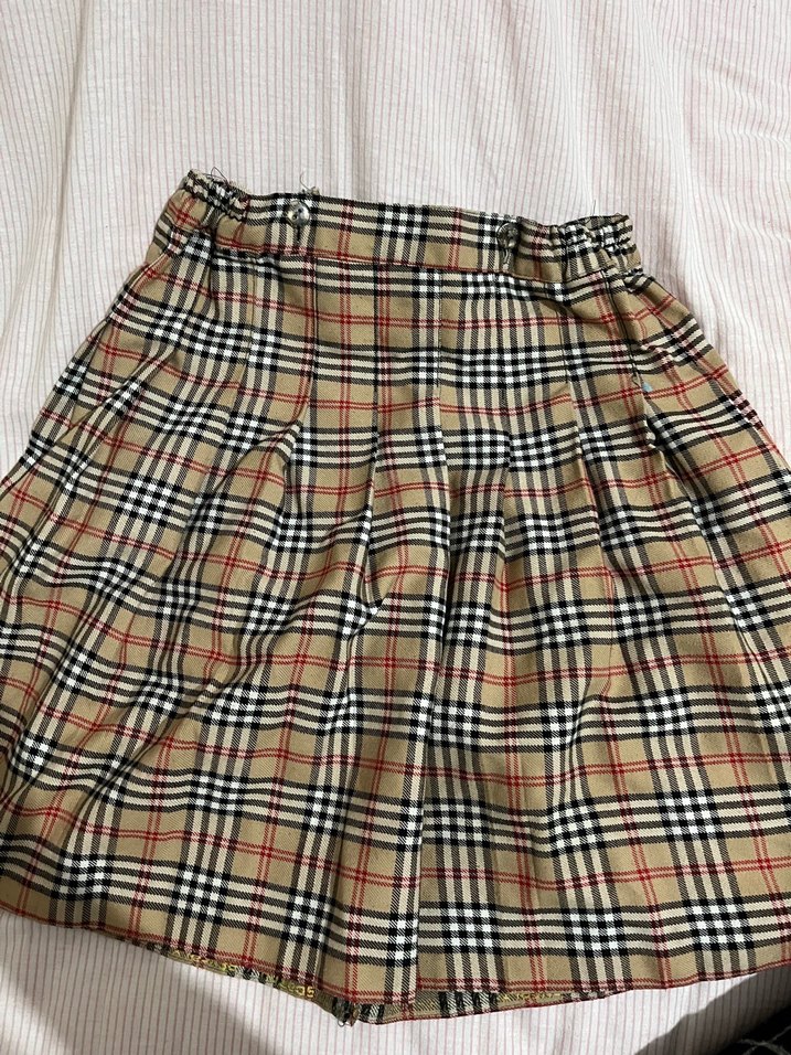 Kahverengi pilili midi etek, sentetik kumaştan, bol kesim. Paris sokak tarzı etkisiyle günlük kullanıma uygun.