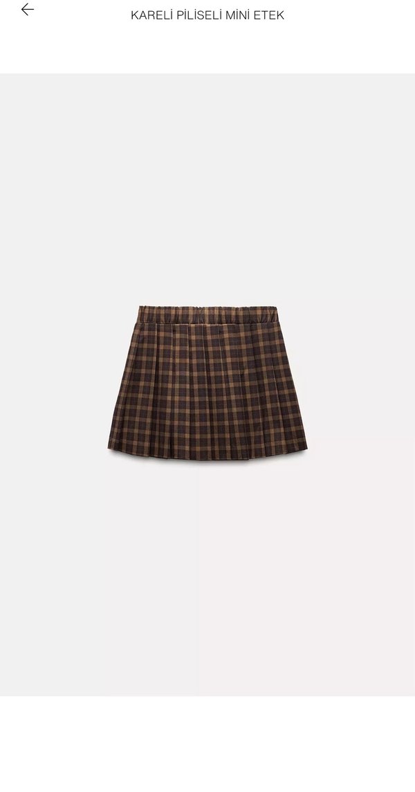 Kahverengi, pilili ve kareli desenli mini etek, sentetik kumaştan, bol kesim, günlük sokak stili için uygun.
