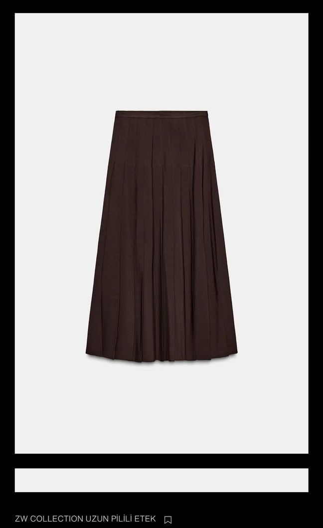 Kadınlar için kahverengi, pilili ve uzun kesim etek. Yumuşak, parlak kumaştan yapılmış, günlük kullanım için uygundur.