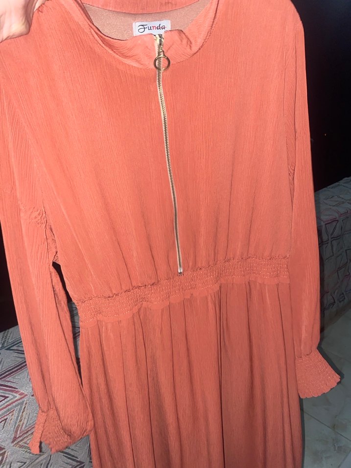 Kahverengi Piliseli Uzun elbise
