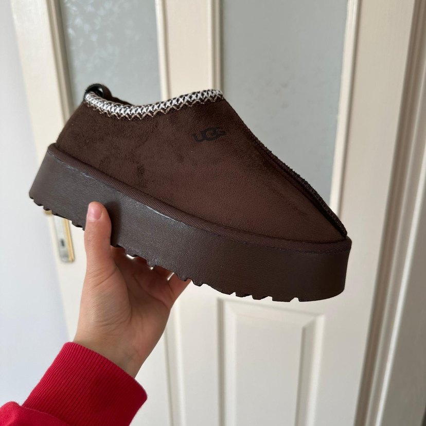 Kahverengi platform tabanlı UGG, yumuşak kürk detaylı ve kauçuk tabanlıdır. Rahat ve şık, günlük sokak stiline uygundur. A KALİTEDİR .