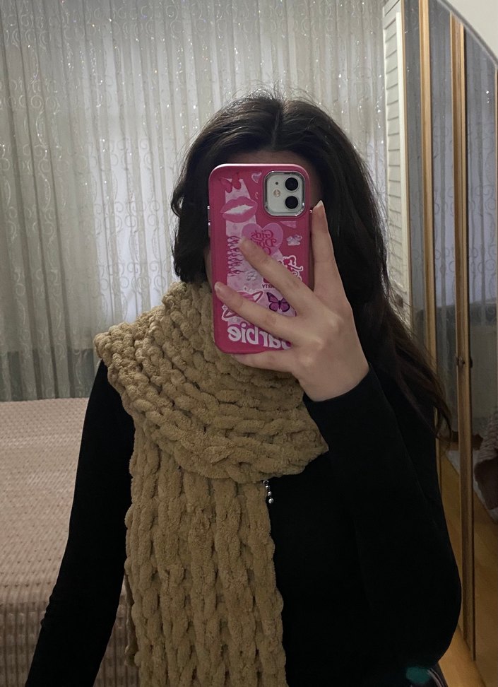 Kahverengi Puffy Örgü atkı