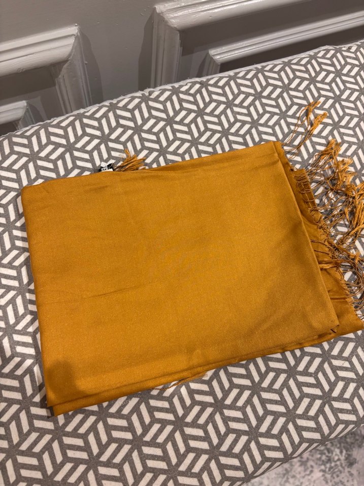 Kahverengi, yumuşak sentetik kumaştan yapılmış, püsküllü kadın bohem şal. Rahat ve retro tarzı yansıtır.