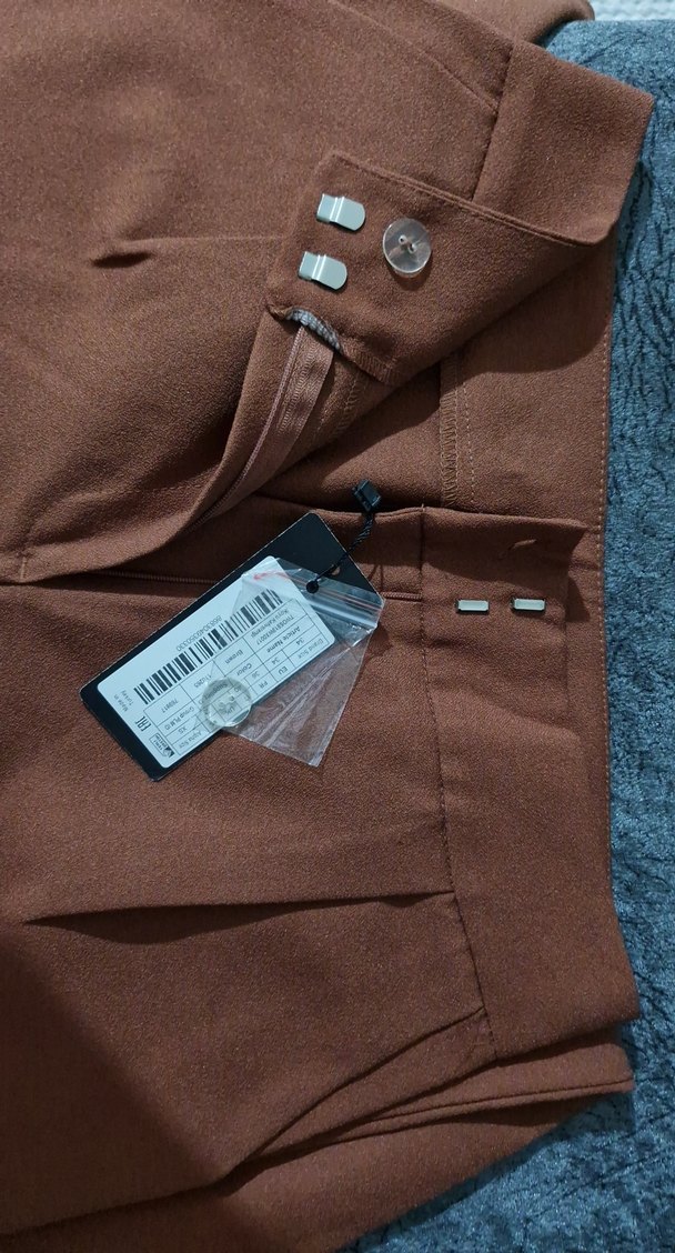 Kahverengi, rahat kesim kadın kumaş pantolon, bol paça,desensiz, günlük kullanıma uygun.