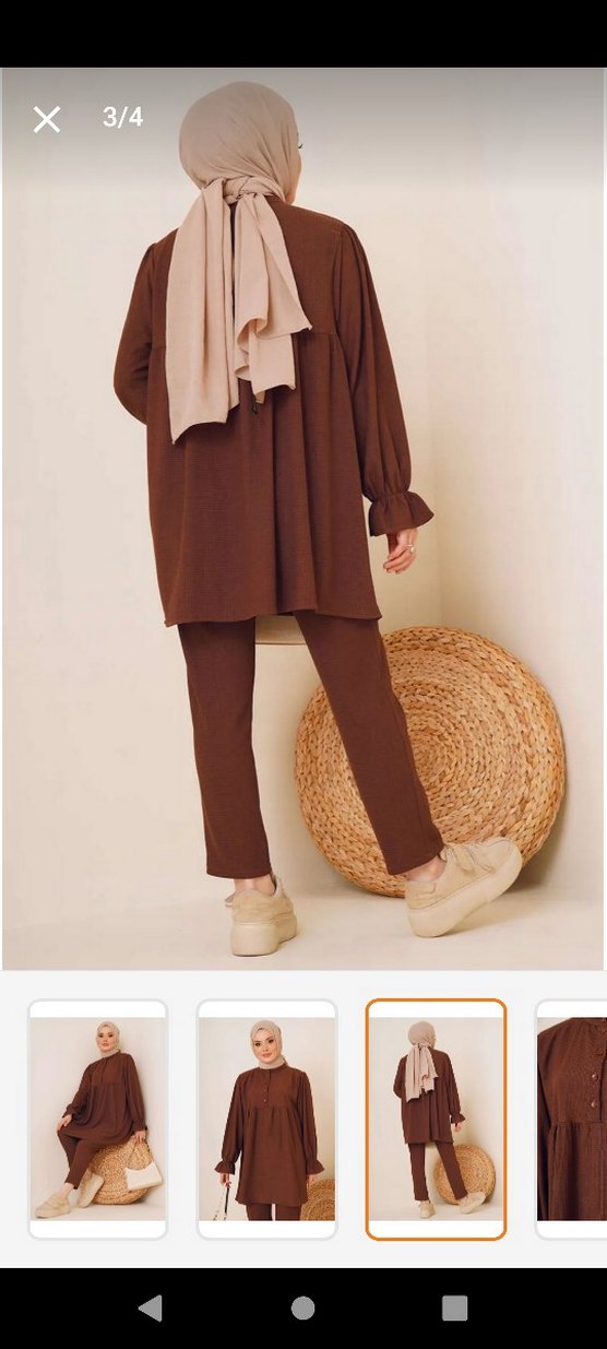 Kahverengi, rahat kesim, midi boy, uzun kollu kadın takımı. Yumuşak sentetik kumaştan, düz koyu renkte, günlük rahat kullanıma uygun, yakası yuvarlak, zahmetsiz şıklık sunar.