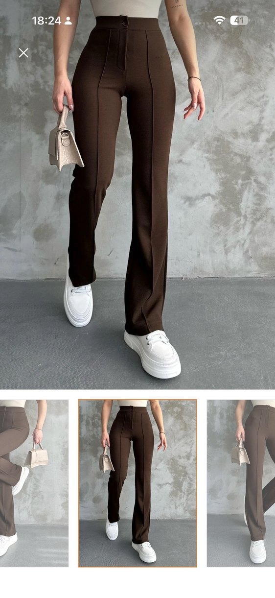 regular fit midi pantolon, minimalist sokak stili ve zahmetsiz şıklık sunar. Pürüzsüz lastik malzemeden yapılmıştır, günlük kullanım için uygundur. S beden uyumludur acı kahve tonunda hiçbir defosu yoktur