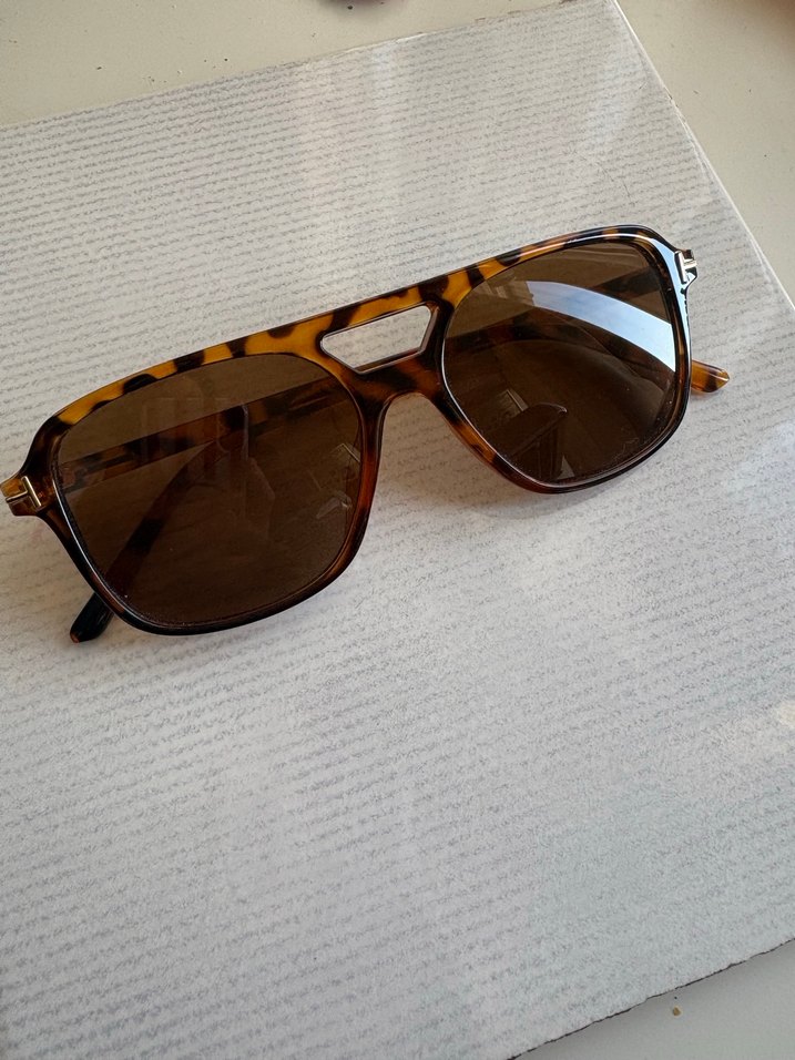 Kahverengi, koyu renkli camlara sahip kadın güneş gözlüğü, bohem ve retro sokak stili için uygundur. Hiç kullanılmadı. Temiz ve sağlam durumda.