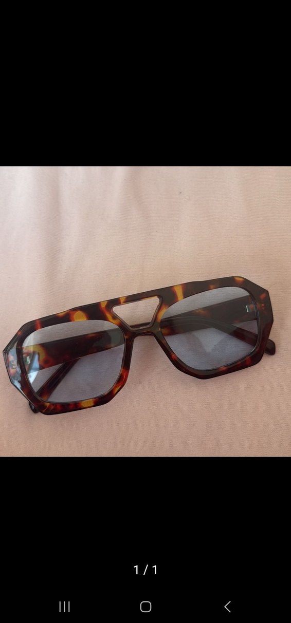Kahverengi retro çerçeveli, mavi renkli camlı kadın güneş gözlüğü, sokak modasına uygun. ️