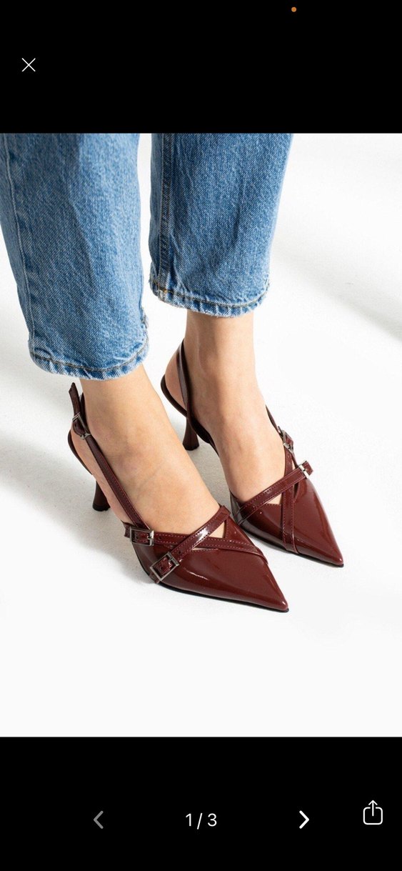 Bordo Rugan Tokalı Stiletto Kadın Ayakkabı
