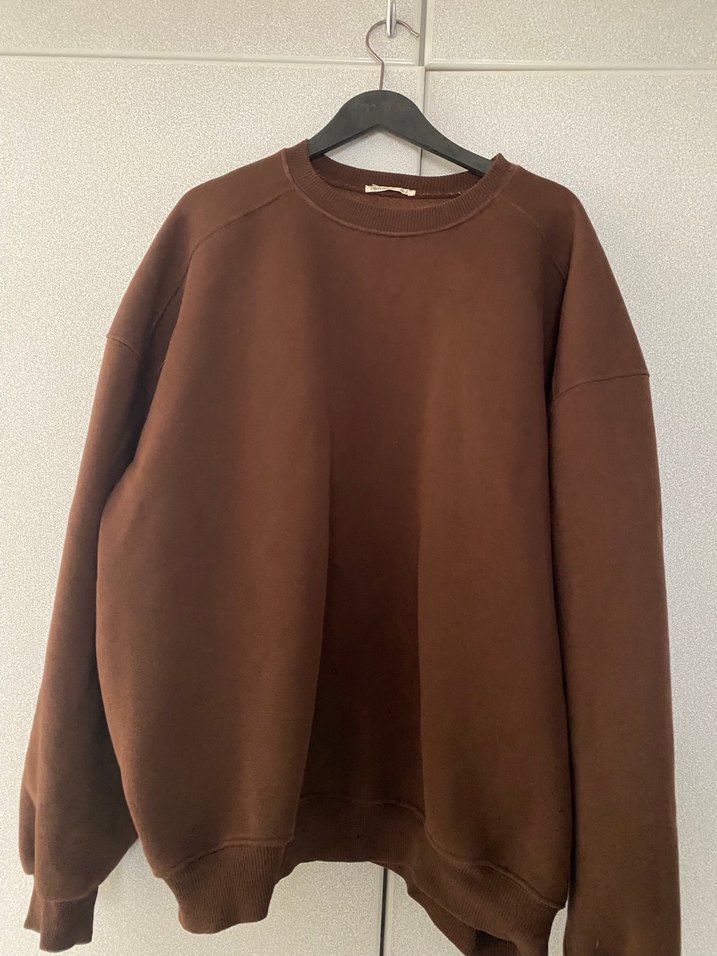 Kahverengi, yuvarlak yakalı ve uzun kollu bu sweatshirt, salaş kesimi ve normal boyuyla minimal ve rahat bir tarz sunar.