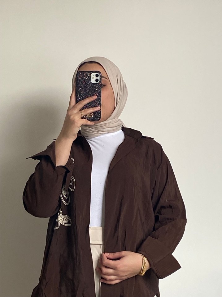 Kahverengi Salaş Midi Kadın gömlek