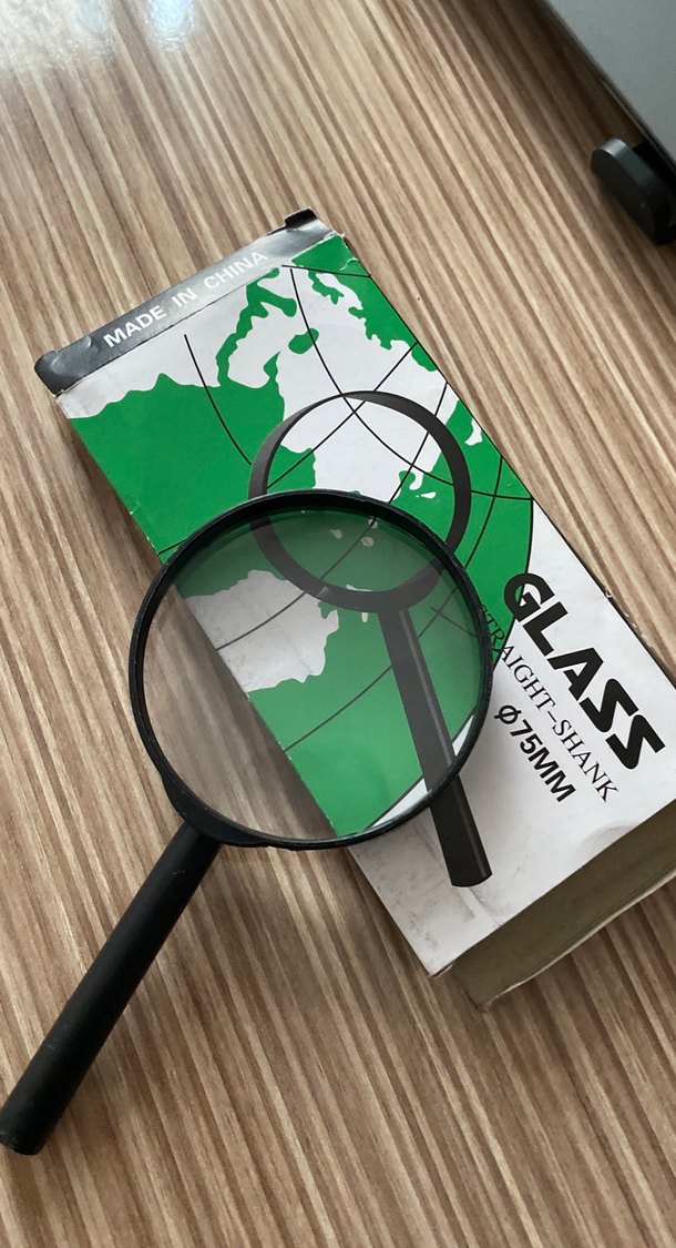 75mm çapında cam lens ve kahverengi saplı büyüteç, ayrıntılı inceleme için uygundur.