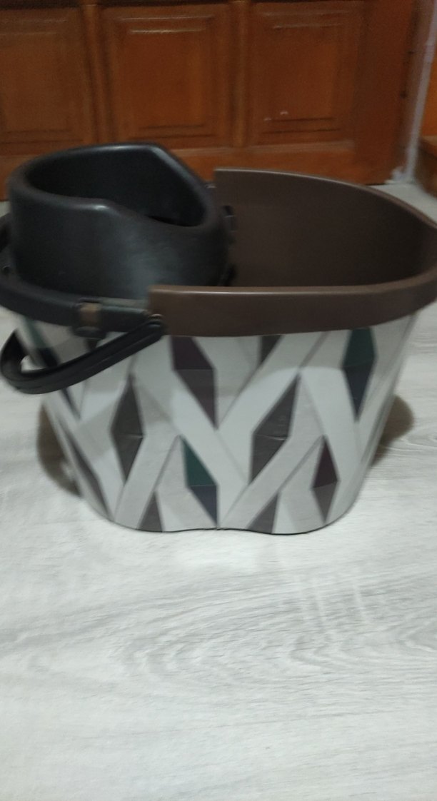 Gri geometrik desenli, kahverengi sapli . Kullanışlı şekli ve dayanıklı yapısıyla kolay kullanım sağlar. Tekerleklidir