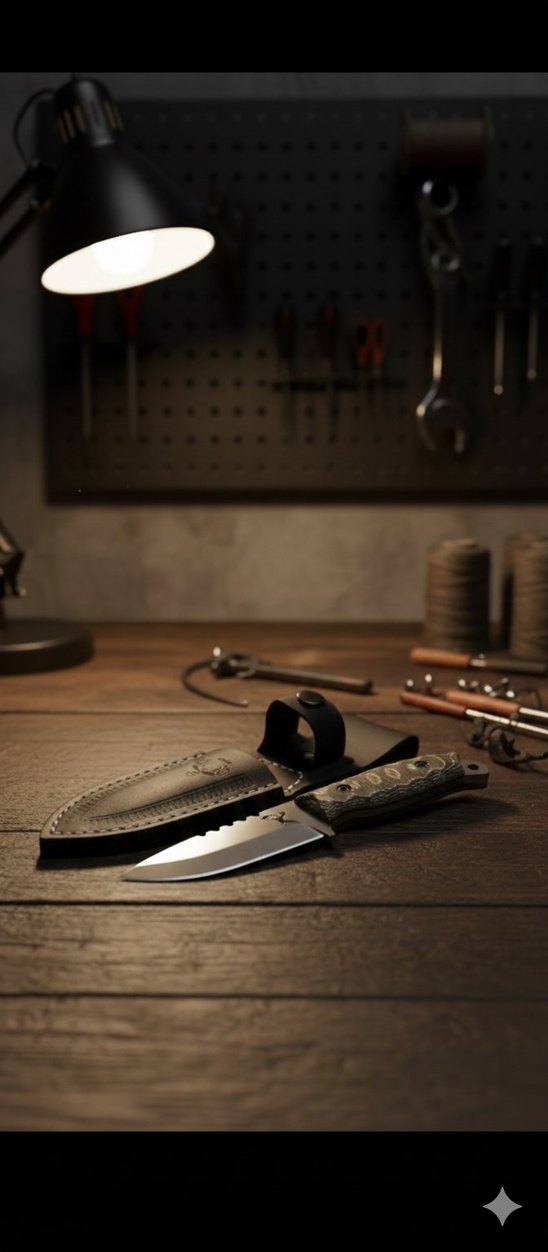 Kahverengi Saplı Kısa Av Bıçağı ve Kılıfı