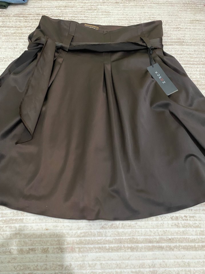 Kahverengi Saten Belli Midi etek