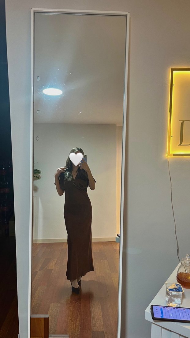 kahverengi saten elbise