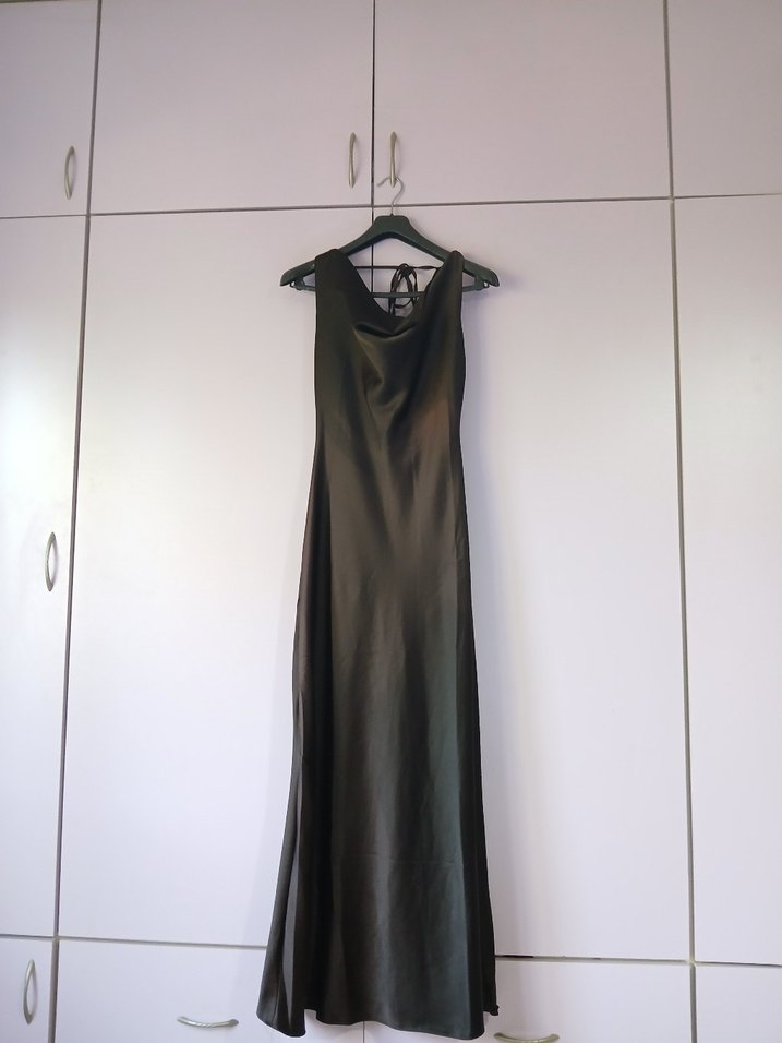 Kahverengi saten elbise