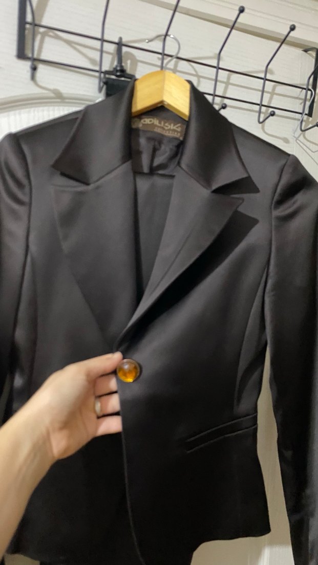 Kahverengi saten Kadın Düğmeli Blazer Ceket