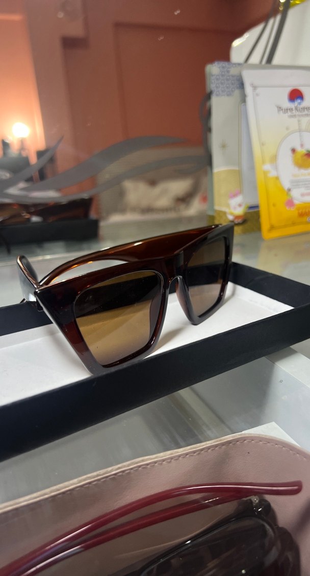 Koyu kahverengi, şeffaf ve minimalist tasarımlı kadın güneş gözlüğü, çağdaş ve trend görünüme uygundur. ️