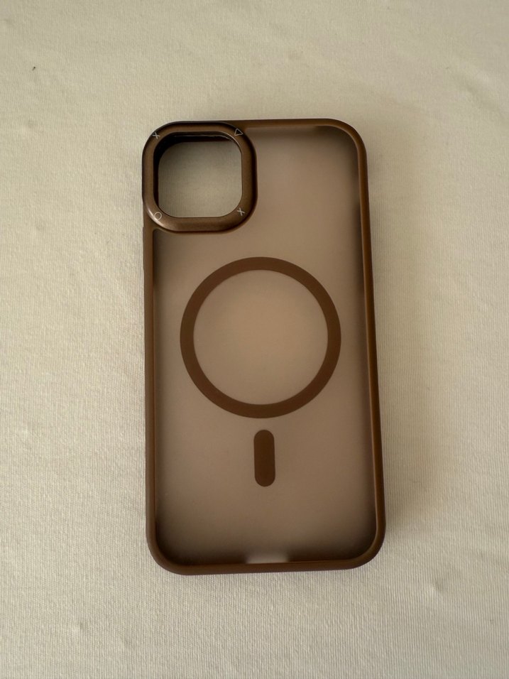 Kahverengi şeffaf telefon kılıfı, arka yüzünde dairesel desenle modern bir tasarıma sahip. Kılıf hastası olduğumuz için ürünler sadece bir iki kez kullanılmıştır