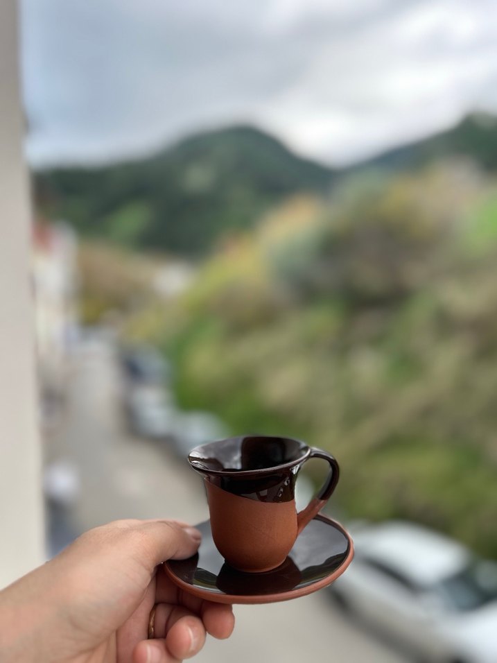 Kahverengi Seramik Fincan ve Tabak