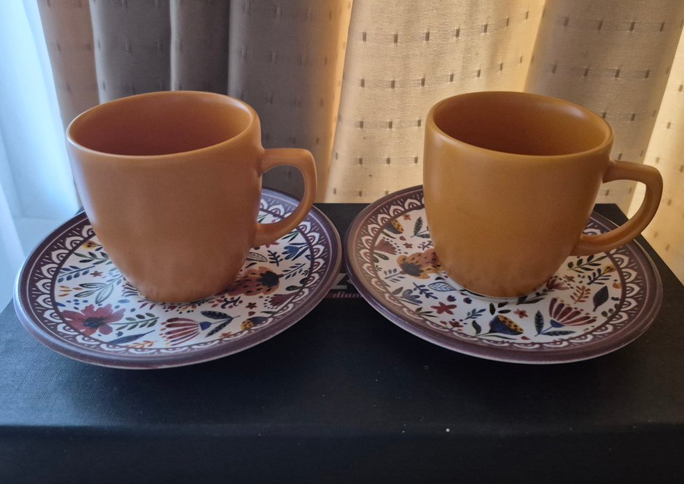 Kahverengi Seramik Kahve Fincanları ve Tabakları